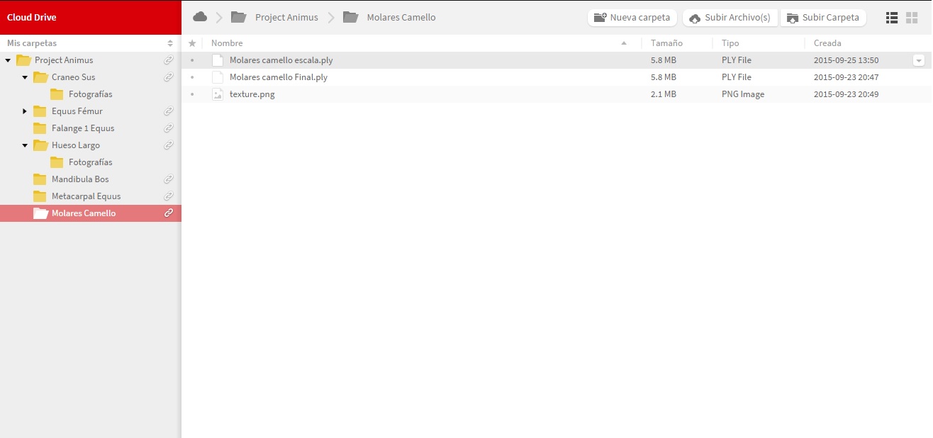 Los archivos en formato .ply los cuales son propiamente los objetos 3D, estos pueden ser impresos sin ningún problema con una impresora 3D, sin embargo de acuerdo a la impresora/recursos/material/tiempo etc. que se disponga o al resultado que se espere, será necesario hacer alguna modificación al tamaño del objeto ya que si se imprime con el tamaño que tienen, puede resultar que sean demasiado grandes o pequeños en relación a lo que se desea. De igual manera en la misma carpeta se encuentra otro modelo con el nombre escala real el cual como lo dice su nombre está en medidas reales, este sirve para poder realizar mediciones anatómicas de alguna parte de interés ya sea largo de superficie oclusal en molares, cabeza femoral en fémur, diafisis…etc, las medidas de escala fueron realizadas con la herramienta de medición del programa MeshLab, sin embargo algunos programas pueden interpretar las medidas de diferente manera, por lo cual se recomienda utilizar el mismo programa si se pretende realizar una medición.